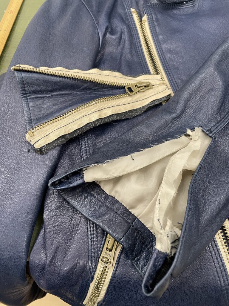 ですが、8センチ詰めるので肘の切り替え位置がとんでもない所になってしまうため、zipを移動し袖口から詰めることとしました。